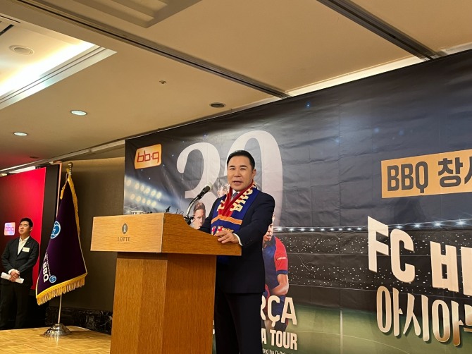 이미지 확대보기제너시스BBQ 그룹이 창사 30주년을 기념해 FC바르셀로나의 서울 매치를 공식 후원한다. 10일 서울 소공동 롯데호텔에서 열린 기자간담회 현장에서 윤홍근 제너시스BBQ 그룹 회장은 “5000만 고객이 있었기에 BBQ가 존재할 수 있었다”며 이번 행사의 의미를 강조했다.