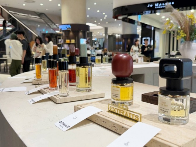 오르메는 2022년 롯데백화점 에비뉴엘 월드타워에도 문을 열었다. 지난 2일 이 매장을 찾았다. 지하 1층 유연한 곡선형 매장에서 오르메 향을 맡을 수 있었다. 향수는 제품 출시 별로 나열돼 있었다. 향수 보틀캡은 각기 다른 모양을 뽐냈다. 오르메 관계자는 “제품마다 추억을 떠올리는 향을 입혔다. 모습에도 추억과 향에 어울리는 모양과 색깔을 입혔다”고 설명했다.