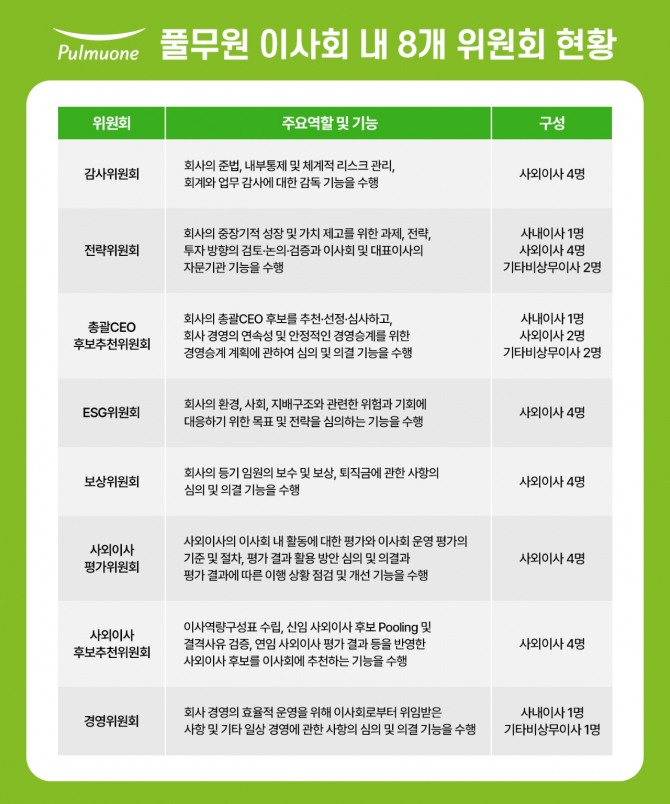 풀무원 이사회사무국 도경업 국장은 “이사회 중심의 독립적이고 전문적인 경영은 기업의 지속가능성과 중장기 경쟁력을 뒷받침하는 핵심 기반”이라며, “앞으로도 투명하고 책임 있는 지배구조를 지속적으로 강화하여 기업가치제고에 기여할 계획”이라고 말했다.