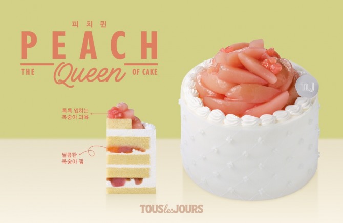 CJ푸드빌 관계자는 “스트로베리 퀸이 큰 사랑을 받으며 뚜레쥬르의 시그니처 생크림 케이크로 자리잡은 만큼, 소비자들에게 새로운 즐거움을 선사하고자 여름 버전의 ‘피치 퀸’을 선보이게 됐다”며 “상큼한 복숭아의 풍미와 부드럽고 진한 생크림의 완벽한 조화를 즐겨보시길 바란다”고 전했다.