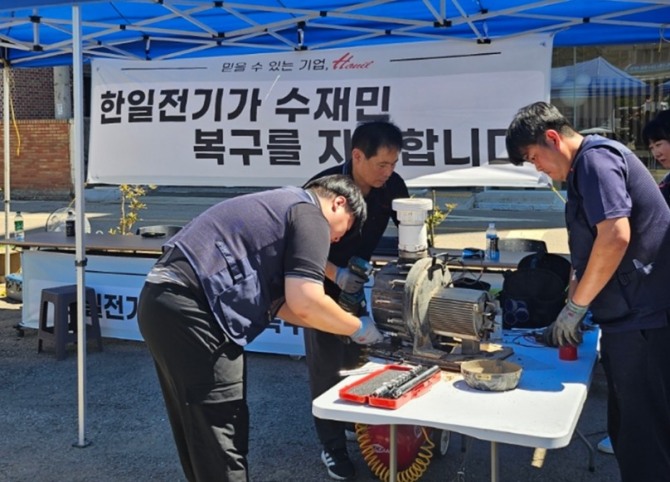 7월 집중호우로 인해 해당 지역 일대는 농경지와 주택 침수 피해가 심각했고, 생활 기반 시설 파손으로 많은 주민이 불편을 겪고 있었다. 이에 한일전기는 베스트셀러 펌프 제품과 주요 생활가전 기기들을 긴급 지원하고, 펌프와 생활가전에 대한 무상 점검과 소모성 부품 수리, 현장 상담 서비스도 함께 제공했다.