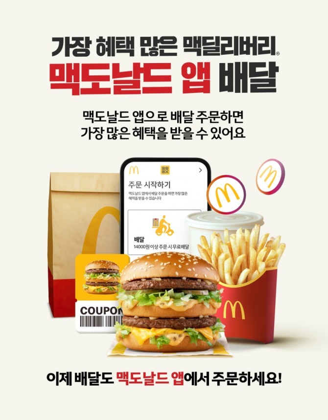 이미지 확대보기이번 프로모션은 맥도날드 공식 앱을 통한 배달 주문 고객이 대상으로, 금액 할인에 이어 매주 제공되는 메뉴 할인 쿠폰의 할인 폭을 넓혀 진행된다.