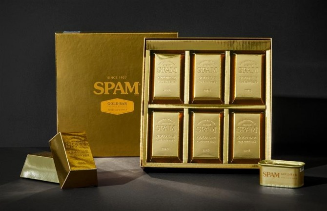 ‘스팸 골드바 에디션’은 ‘골드바’ 모양의 종이상자 6개로 구성됐으며, 각 상자 안에는 황금색 라벨의 스팸이 들어있다. 실제 골드바와 비슷한 크기와 디자인으로 고급스러운 분위기를 한층 더해 이색적이면서도 특별한 선물을 찾는 소비자들에게 인기를 끌 것으로 기대된다.