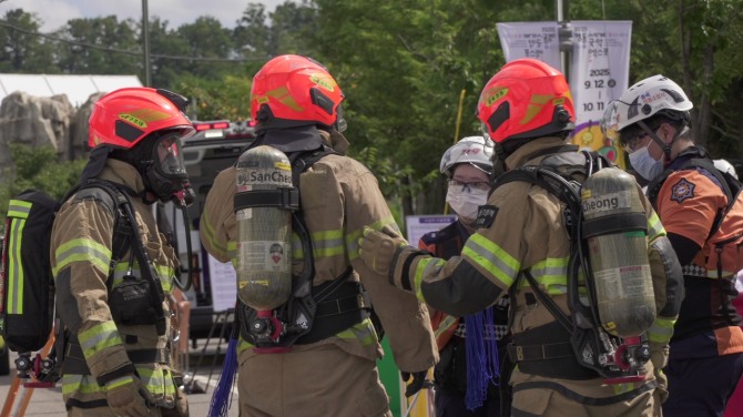 이미지 확대보기이번 지원은 폭염 속 장시간 훈련에 참여한 소방관들의 체력 회복과 휴식을 위해 마련됐다. 현장에는 간식차가 운영돼 커피와 컵과일 등 200인분 간식이 제공됐으며, 대원들은 휴식 시간 동안 이를 활용해 재충전할 수 있었다.