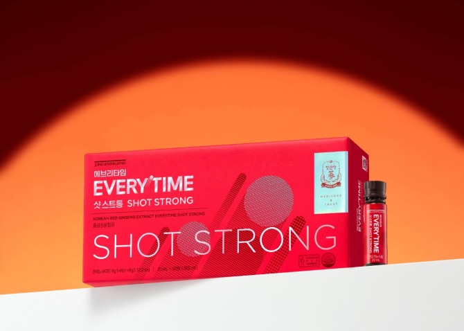 이번 출시한 제품은 ‘에브리타임 샷’ 라인업의 프리미엄 제품으로, 하루 한 병 간편한 섭취로 활력과 에너지를 부스팅한다. ‘에브리타임 샷 스트롱’은 면역을 챙기고 싶고 피로개선을 원하는 이들에게 적극 권할 수 있는 제품이다. 홍삼 베이스의 강한 활력이 느껴지는 강렬한 빨강색 외관에 깊이감이 느껴지는 짙은 용기 구성으로 프리미엄 가치를 더했다.