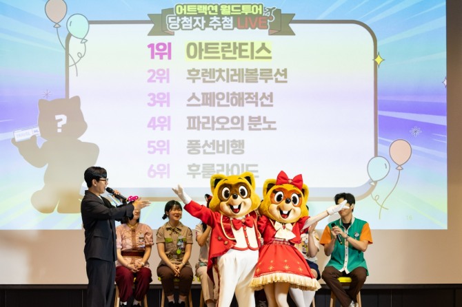 이미지 확대보기이번 ‘어트랙션 월드투어’는 여름 휴가철인 8월 4일부터 31일까지 28일간 진행됐으며 약 1만 6000여명이 투표에 참여할 만큼 뜨거운 호응을 얻었다. 오랜 기간 사랑받아 온 6종의 인기 어트랙션이 후보로 올라 ‘1위 어트랙션’이란 영광을 차지하고자 치열한 경합을 펼쳤다.