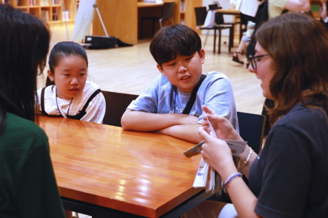 이 수업은 원어민 교사 1명이 4명의 학생을 맡는 담임제로 진행된다. 아이들은 작가 키트를 활용해 단어 탐색부터 문장 구성까지 창의적 스토리텔링을 배우고, 인공지능(AI) 도구로 스토리에 맞는 동화 일러스트를 제작한다. 완성된 원고는 실물 영어 동화책으로 출간돼 1주일 뒤 가정으로 전달된다.