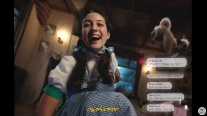 영상을 본 고객들은 "토네이도를 즐기는 도로시 라방이라니, 두가지 오즈 신나게 즐기러 가야겠다", "도로시 라방 신났네~ 아이디어 좋다", "다음 이야기가 너무 궁금해요 직접 가봐야 하는거겠죠!" 등 좋은 반응을 보이고 있다.