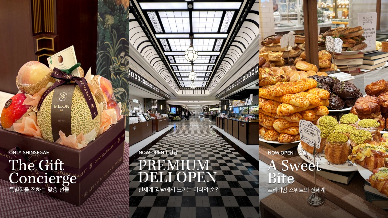 신세계백화점은 식품관 경쟁력 강화를 위한 투자를 이어가고 있다. 사진은 최근 문을 연 ‘스위트파크’(프리미엄 베이커리존), 확장·리뉴얼한 프리미엄 델리관, 추석 시즌 선보인 프리미엄 선물세트 모습. 사진=신세계백화점 SNS이미지 확대보기