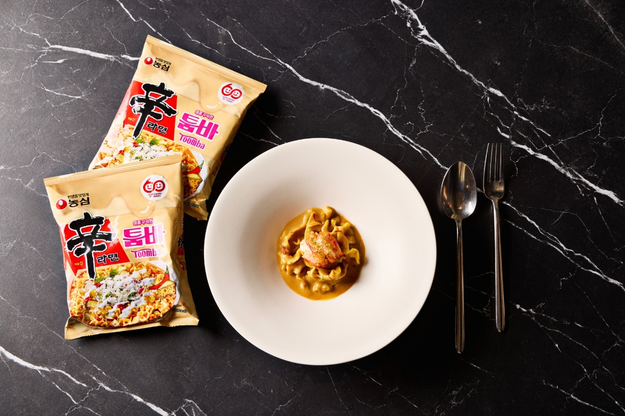 소스는 신라면 툼바 스프와 발효 고추를 사용해 특유의 매운맛을 살리고, 갑각류 육수와 버터를 더한 로제소스에 샤프란·토마토소스·올리브오일을 조합해 다층적인 향과 색감을 완성했다. 생면에는 분쇄한 신라면 툼바 면을 넣어 쫄깃한 식감을 살렸으며, 숯불에 구운 랍스터와 쥬키니, 민트를 곁들여 파인다이닝 수준의 풍미를 구현했다.