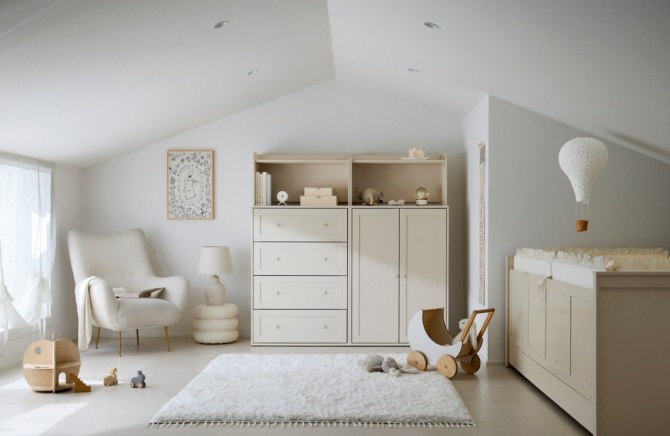 세부적으로, 침대 카테고리에 모던클래식 스타일을 반영한 ‘저상형 하이가드 데이베드’와 ‘하부 수납형 데이베드’를 출시했다. 저상형 하이가드 데이베드는 가드의 높이를 기존 데이베드보다 9cm 높였고, 아이의 뒤척임을 안전하게 지켜주는 범퍼가드를 함께 선보이며 수면 환경의 안전성을 높였다. ‘하부 수납형 데이베드’에는 침대 아래에 큰 이동 서랍 두 개가 있어 수납공간을 넓히는 효과를 얻을 수 있다. 침대의 가드 위치에 따라 저상형 하이가드 데이베드는 4면형과 5면형, 하부 수납형 데이베드는 3면형과 4면형 중 선택할 수 있다. 신규 침대 컬러로는 차분하고 고급스러운 분위기의 오트밀 베이지가 추가됐다.