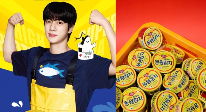 방탄소년단(BTS) 진이 모델로 나선 동원참치 제품. 동원F&B는 11월부터 미국 아마존에서 참치 캔 판매를 본격화한다. 사진=동원F&B 공식 SNS