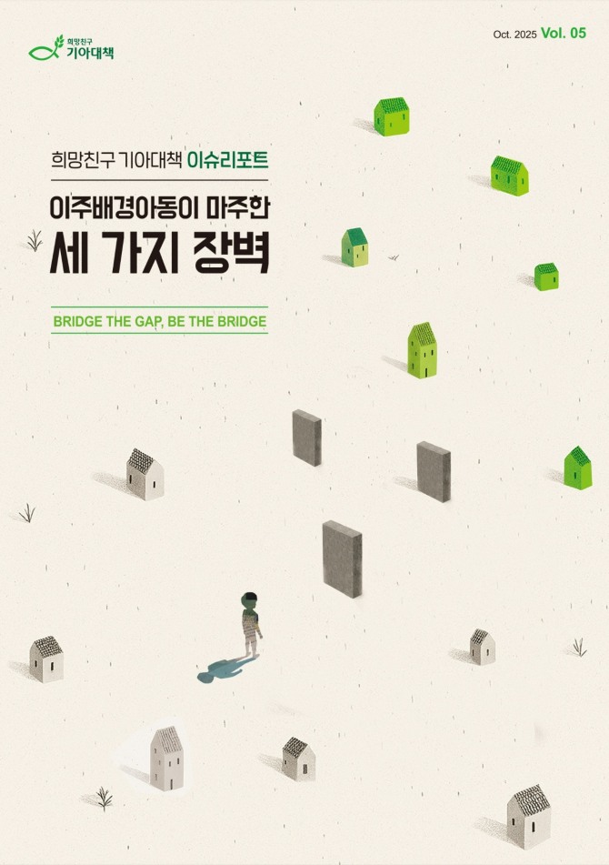 이미지 확대보기기아대책은 국내 이주배경 아동·가정의 수가 꾸준히 증가하고 있음에도, 여전히 제도적 공백과 정책 사각지대가 존재함을 주목해 이번 리포트를 발간했다. 단순한 지원을 넘어, 사회적 인식 개선과 제도적 변화를 이끌기 위한 데이터 기반의 연구를 통해 향후 이주배경아동에 대한 사업 방향성과 옹호활동의 기반을 마련하고자 한다.