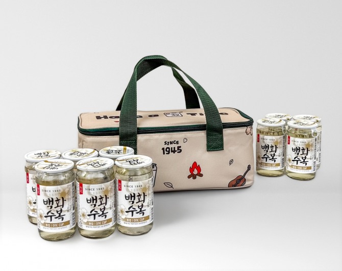 이미지 확대보기‘백화수복 원컵 캠핑 패키지’는 지난 봄 공개한 ‘백화수복×800도씨 반합’ 협업에 이은 야외 전용 콘셉트 제품이다. 180ml ‘백화수복 원컵’ 10개와 이를 한 번에 수납할 수 있는 단열 캠핑백으로 구성했으며, 코스트코 등 창고형 할인점과 일부 대형마트에서 한정 판매한다.