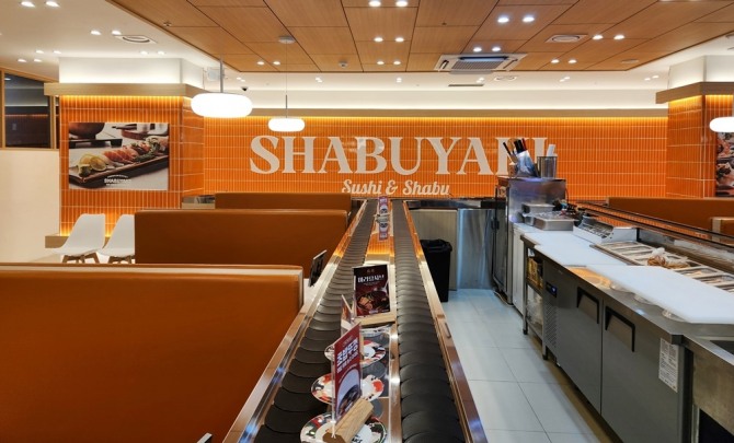 삼성웰스토리는 샤브야키가 다양한 메뉴를 동시에 제공하고 매장 내 고객 이동이 잦은 브랜드인 만큼 고객이 샐러드바, 소스 셀프바, 육류 쇼케이스 등으로 쉽게 접근할 수 있도록 매장 중앙에 위치한 회전초밥 레일 간격을 최적화해 좌석을 배치하고 메뉴 제공 공간도 이동 동선을 고려해 설계했다.