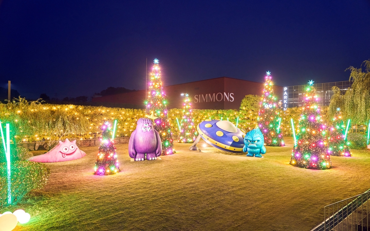 올해 크리스마스 트리 및 일루미네이션은 시몬스 테라스를 점령한 몬스터 파티 플래너 ‘바코(Vako)’, ‘버보(Bubbo)’, ‘피지(Fizzy)’, ‘포포(Popo)’와 함께 즐기는 크리스마스 파티 콘셉트다.
