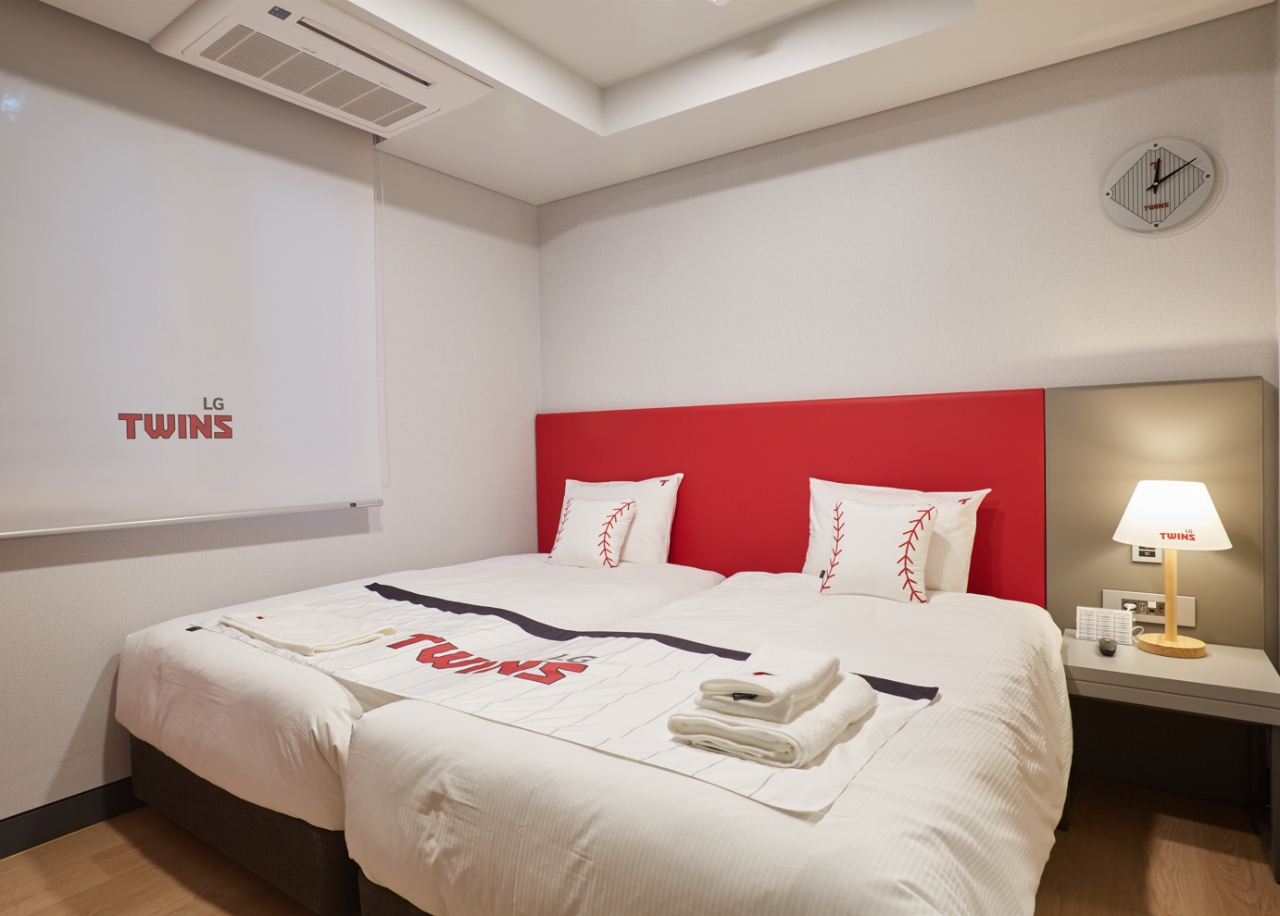 이미지 확대보기LG계열사인 곤지암리조트는 LG트윈스와 협업하여 국내 최초로 ‘LG트윈스 테마룸’을 선보이며, 그동안 트윈스팬으로부터 많은 사랑을 받아왔다. 이번 트윈스 우승 기념 윈윈 페스티벌 기간 동안 LG트윈스의 대표 선수들의 싸인볼과 유니폼, 굿즈 등으로 꾸며진 야구 컨셉의 테마룸인 ‘LG트윈스 테마룸’을 40% 할인된 금액으로 투숙할 수 있는 프로모션을 진행한다.