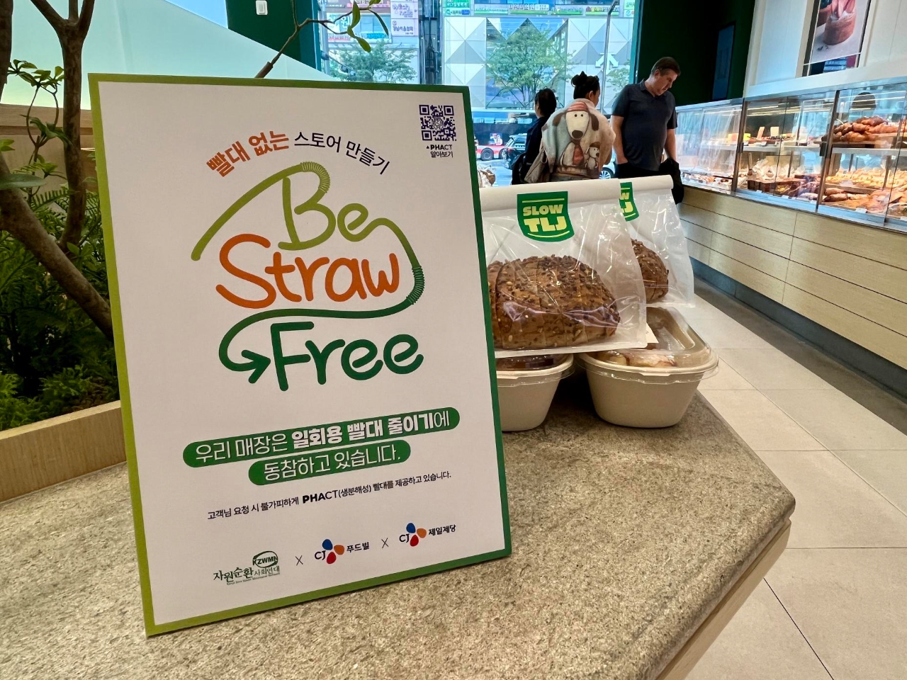 이미지 확대보기‘빨대 없는 스토어 만들기’ 캠페인은 자원순환에 대한 사회적 공감대를 형성하기 위한 활동이다. 기후 위기 대응 실천과 탄소중립 사회로의 전환을 촉진한다는 목표다. 매장 내 일회용 석유계 플라스틱 빨대를 비치하지 않고, 고객 요청 시 생분해성 PHA 빨대를 제공하는 방식으로 운영된다. 이달 10일부터 강릉 커피전문점(18곳), 뚜레쥬르 직영점(2곳) 등 총 20개 매장에서 진행된다.