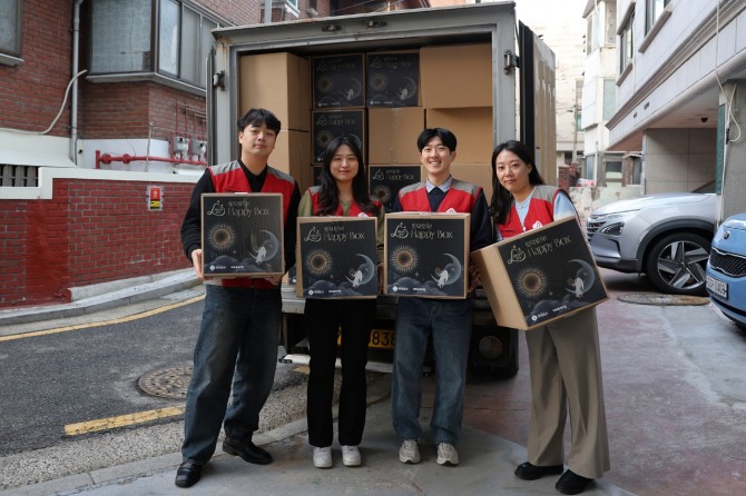 이번 해피박스는 영유아 양육 환경을 세심하게 고려해 적외선 귀체온계, 담요, 아기 간식, 기저귀 파우치 등 아기용품과 기초 화장품 등 부모용품으로 구성했다. 특히 기저귀 파우치는 약 100명의 임직원이 자발적으로 제작에 동참하며 나눔의 의미를 더했다. 사내 주니어보드 구성원들도 해피박스 포장 및 물품 전달 활동에 함께 참여하는 등 임직원의 폭넓은 참여를 바탕으로 행사가 진행됐다.