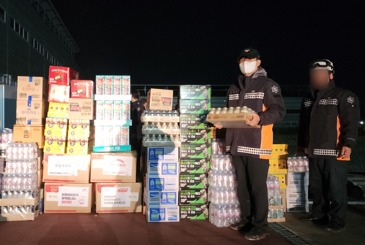 지원된 소방관 출동 키트는 △방진 마스크 △스포츠 타월 △치약·칫솔 세트 △물티슈 △아카시아 꿀 스틱 △멀티비타민 등 총 14종의 필수 물품으로 구성됐다. 이와 함께 핫팩, 커피, 에너지바 등 1000만 원 상당의 물품도 지원돼 추운 겨울 현장에서 즉각적인 휴식과 에너지 보충이 가능하게 했다.