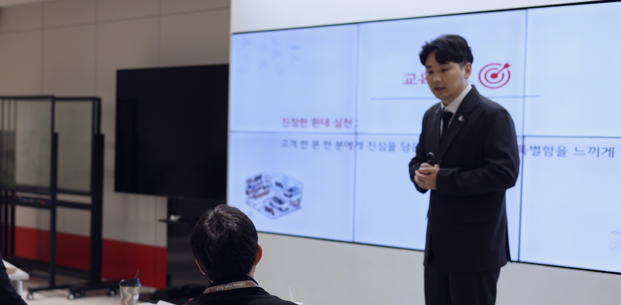 이미지 확대보기모빌리티 전문 기업을 대상으로 ‘서비스 연수 교육’을 2025년 12월 8일에 진행하여 성황리에 마쳤다. 모빌리티 기업 맞춤형으로 준비한 교육으로 모빌리티 서비스 전문가 16명이 함께했으며, 학습 수준에 따라 기본 과정과 심화 과정으로 나누어 진행하였다. 기본 과정은 고객 중심 사고를 기반으로 비언어 커뮤니케이션을 강화하는 서비스 기본기에 초점을 맞춘 교육으로 구성하였고, 심화 과정은 고객과의 의사소통 과정에서 프리미엄 서비스를 제공하기 위한 비즈니스 의전과 설득 커뮤니케이션 스킬로 진행되었다.