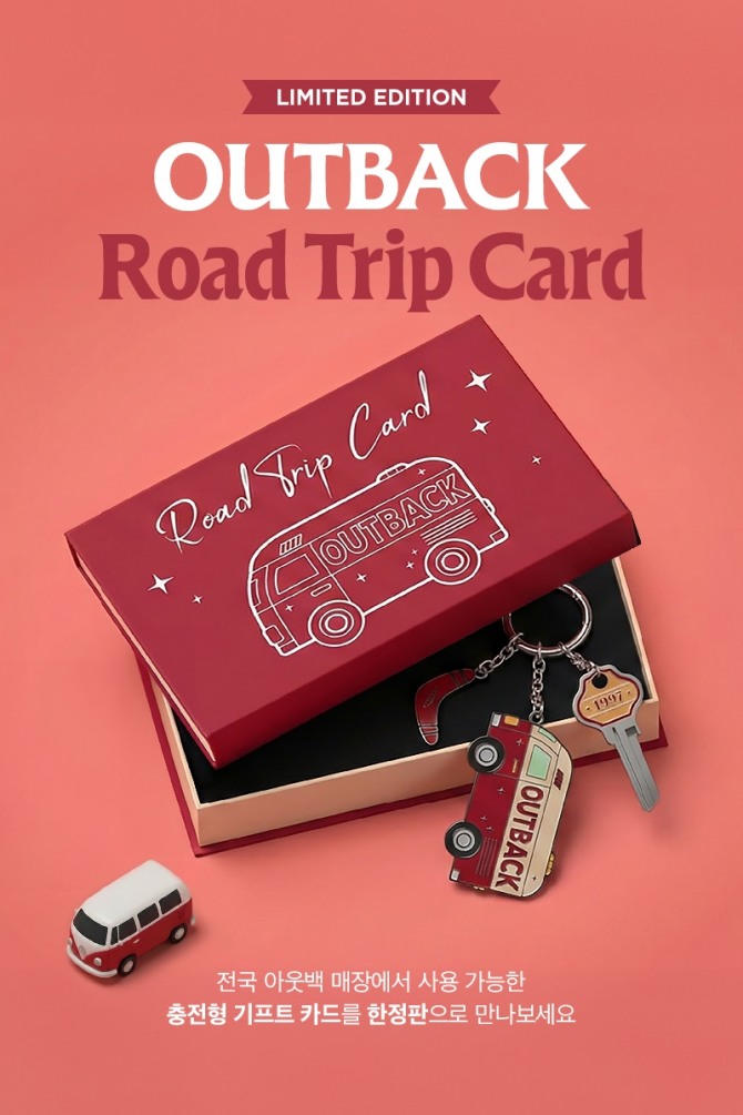 이미지 확대보기13일 아웃백에 따르면 로드 트립 카드는 RFID 기능이 적용된 충전형 기프트 카드로, 아웃백만의 브랜드 아이덴티티를 감각적으로 담아냈다.