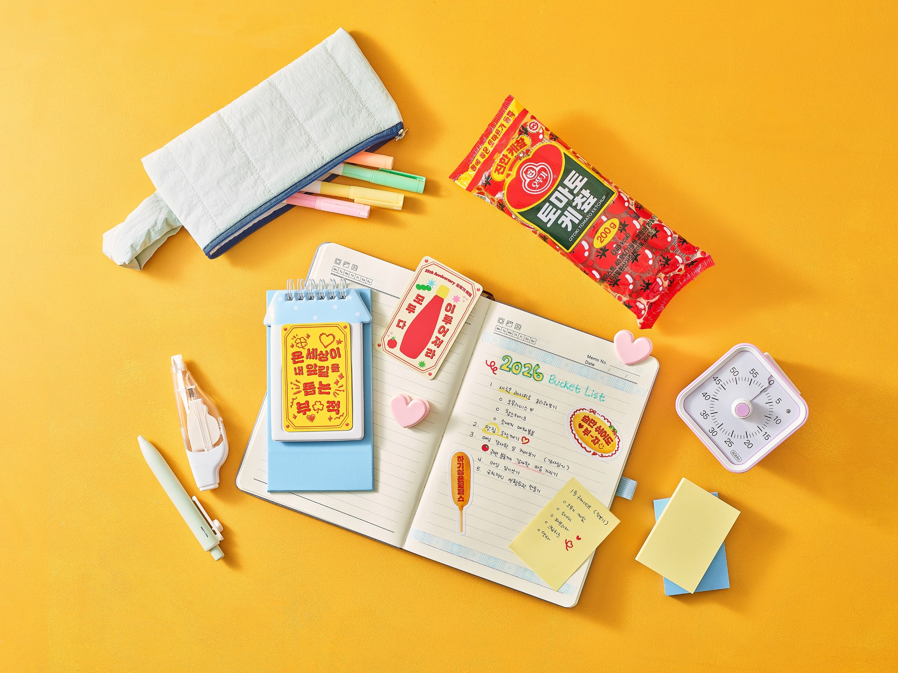 특히 이번 굿즈는 2026년 새해 소망 및 행운을 담은 문구를 메인으로 구성해, 일상 속 소소한 즐거움과 함께 브랜드 경험을 동시에 전달하도록 기획됐다. 케챂이라는 제품만이 보유한 특성을 재미있게 풀어 낸 그래픽 요소로, 오뚜기 케챂만의 오랜 역사와 정체성을 감각적으로 느낄 수 있는 것이 특징이다.
