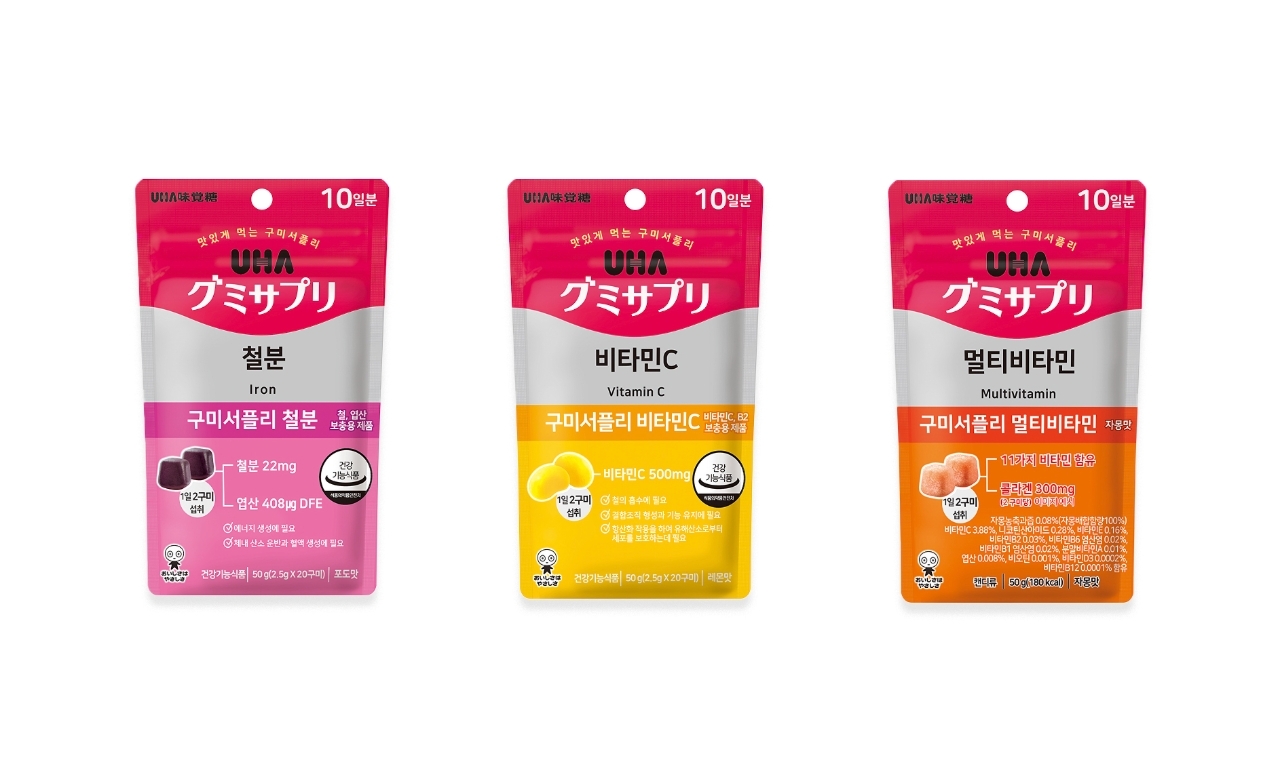 이미지 확대보기‘UHA 미카쿠토’는 국내에서도 ‘푸쵸’와 ‘코로로 젤리’로 잘 알려진 브랜드로 ‘UHA 미카쿠토 구미서플리’는 일본 여행 시 필수 구매 아이템이자 직구 인기 상품으로도 유명하다. 이번에 GS25가 선보이는 상품은 총 3종(철분·비타민C·멀티비타민)이며 국내 기준 건강기능식품으로 분류되는 상품은 철분·비타민C 2종이며 멀티비타민은 일반식품이다.