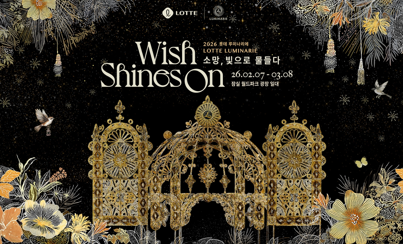 이미지 확대보기지난해에 이어 2회째를 맞이한 ‘2026 롯데 루미나리에’는 롯데물산이 롯데지주와 함께 준비한 새해 첫 이벤트다. 루미나리에(Luminarie)는 ‘빛’ 또는 ‘조명’을 뜻하는 이탈리아어로, 조명을 이용해 건축물을 만들거나 꾸미는 빛 축제를 의미한다. 올해 루미나리에 테마는 새봄을 기다리는 2월, 모두의 소망이 이뤄지길 바라는 마음을 담아 ‘Wish Shines On(소망, 빛으로 물들다)’으로 정했다.
