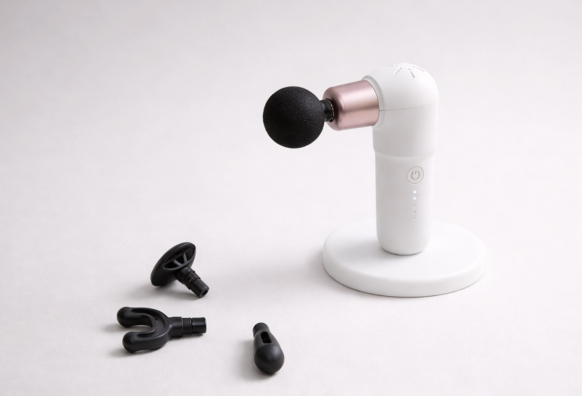 이미지 확대보기먼저 ‘바디프랜드 미니 마사지건’이다. 미니 마사지건은 본체 무게 260g의 초경량 제품으로 휴대성을 극대화했다. 7mm 진폭과 최대 8kg의 타격감을 구현했으며, 5단계 강도 조절도 가능하다. 또한, 4종의 교체형 헤드를 통해 부위별 맞춤 마사지가 가능하다.