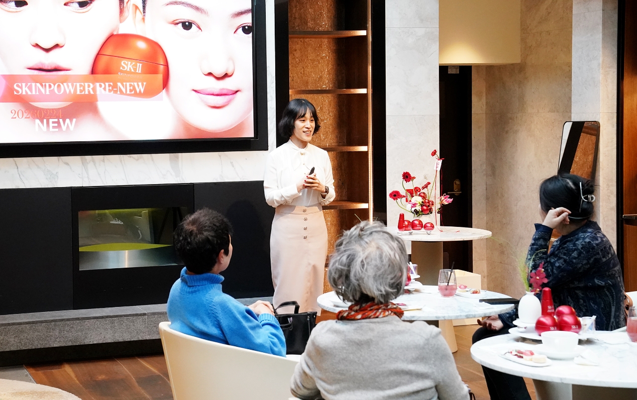 SK-Ⅱ와 협업해 성사된 이번 세션은 신제품인 스킨파워 리뉴 라인업 소개와 플라워 클래스 진행, 그리고 2대1 핸드 마사지 및 제품 컨설팅을 제공해 전문성을 높였다.