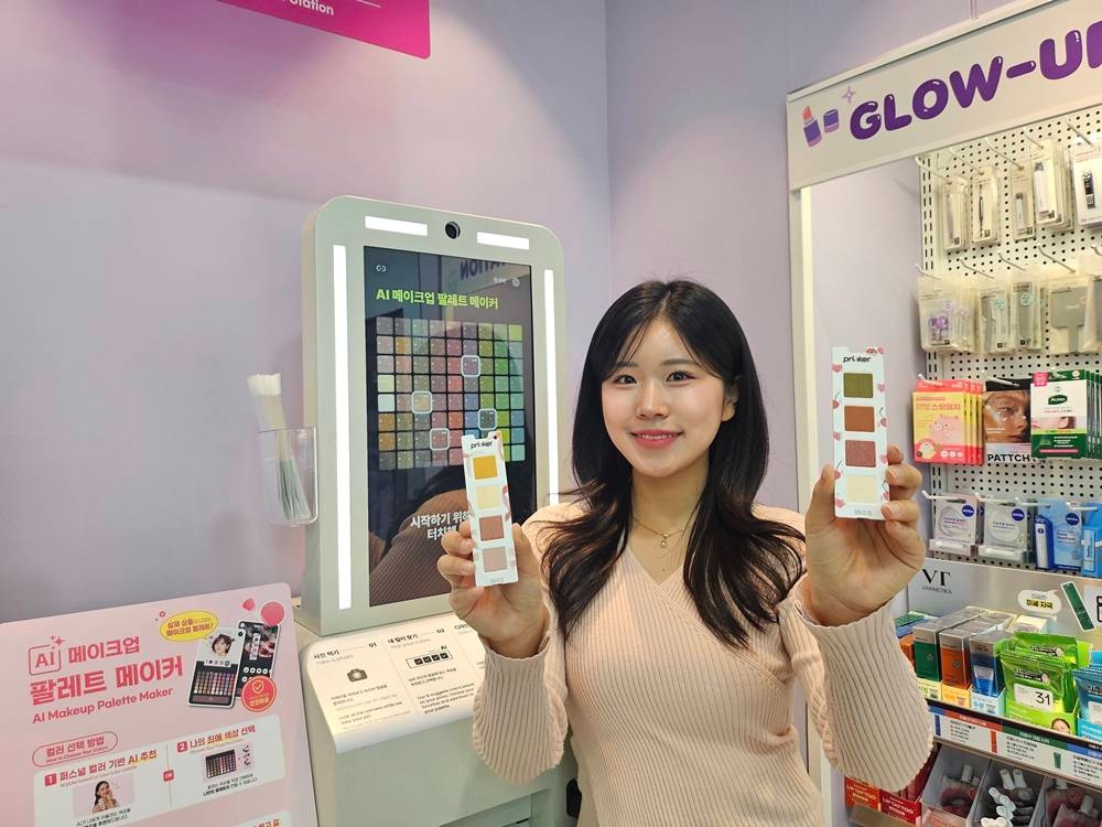 26일 BGF리테일에 따르면 ‘메이크업 팔레트 메이커’는 키오스크에서 얼굴을 촬영하면 AI가 고객의 퍼스널 컬러를 진단한 뒤, 피부톤에 어울리는 컬러를 추천해 주고 직접 화면 속 자신의 얼굴에 원하는 컬러를 적용시켜 즉석에서 메이크업 팔레트 완제품을 받아볼 수 있다.
