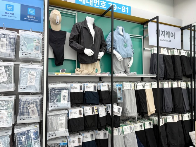 의류 사업은 최근 3~4년 사이 빠르게 커졌다. 다이소는 2022년 이지웨어·스포츠웨어·홈웨어를 시작으로 여름철 ‘이지쿨’, 겨울철 ‘이지웜’ 등 기능성 의류를 추가해 왔다. 올해 3월에는 ‘캐주얼 경량 시리즈’를 통해 바람막이와 팬츠 등 일상복까지 상품군을 넓혔다.
