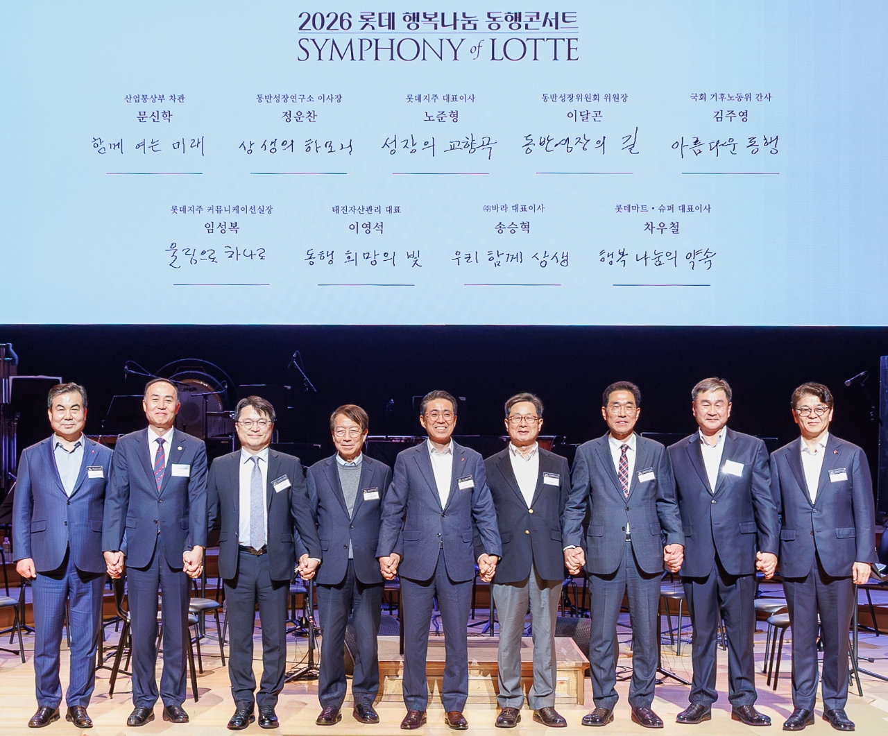 본 공연에 앞서 롯데와 파트너사는 동반성장 의지를 다지는 세리머니를 진행했다. 노준형 롯데지주 대표이사, 정운찬 동반성장연구소 이사장, 이달곤 동반성장위원장, 김주영 국회 기후에너지환경노동위원회 간사 등이 파트너사 대표들과 무대에 올라 동반성장 메시지를 직접 작성했다.