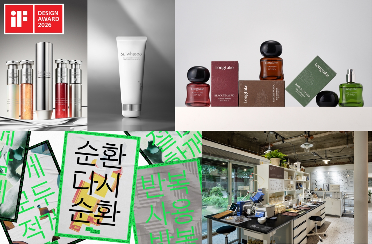 설화수의 ‘진설 인퓨전 트리트먼트’는 피부 주기에 맞춘 리필 구조와 사용 편의성을 고려한 용기 설계가 특징이며, ‘진설 넥크림’은 회전형 팁 구조를 적용해 사용 방식을 개선한 점이 반영됐다. ‘롱테이크 오 드 퍼퓸’은 자연에서 영감을 받은 곡선형 디자인과 재활용 가능한 유리 소재를 적용했다.
