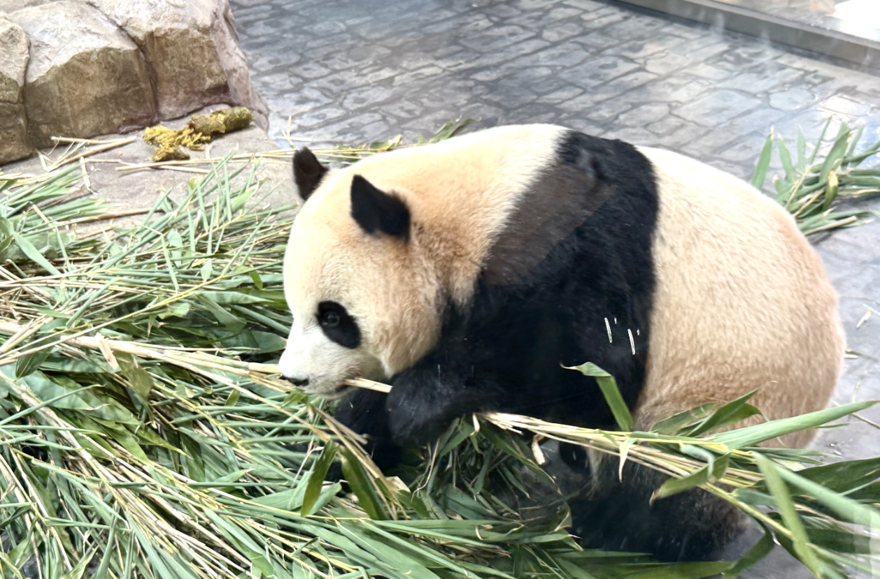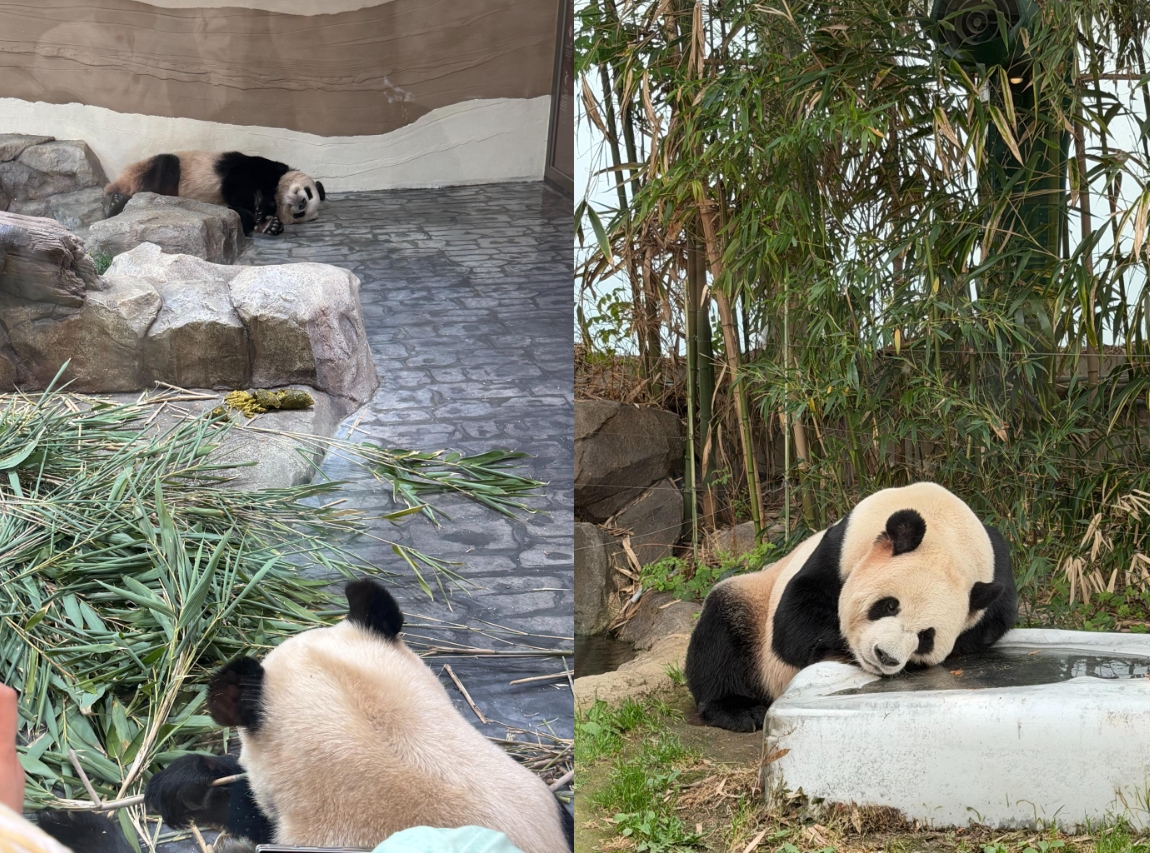 실내외 공간을 나눠 생활하는 판다 가족의 모습도 눈에 띄었다. 러바오는 실내 바닥에 몸을 길게 늘어뜨린 채 잠을 자고 있었고, 실외에서는 아이바오가 대나무를 씹으며 비교적 활발하게 움직이고 있었다. 아이바오가 먹이를 먹거나 이동할 때마다 관람객들이 몰리며 발 디딜 틈 없이 북적였다.