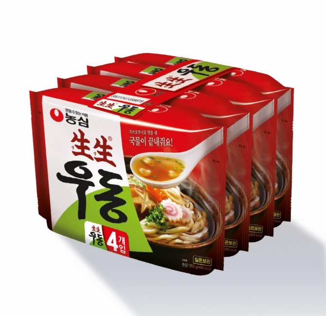 농심은 5월 말부터 생산되는 생생우동 4개 묶음 제품 포장을 밴드로 감싸는 방식으로 변경한다고 21일 밝혔다. 농심은 이번 라면 포장 간소화를 통해 연간 약 10t의 플라스틱 필름 사용량을 줄일 수 있을 것으로 기대하고 있다.
