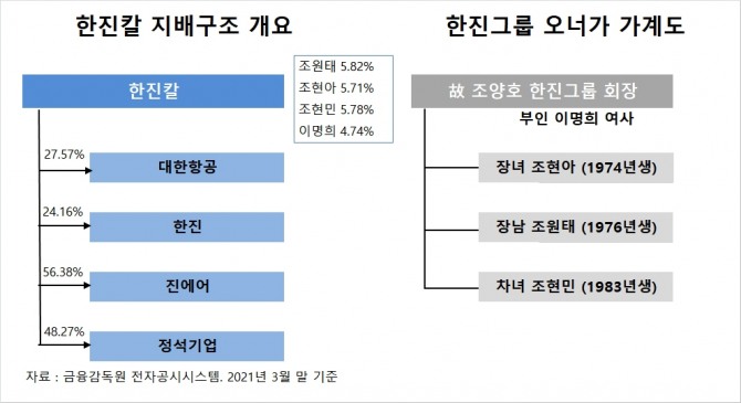 ◇ 최대주주 조원태 회장 지분은 5.82%에 불과…조현아 전 부사장은 지분 일부 매각