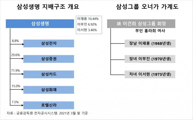 이부진 사장과 이서현 이사장은 삼성생명 대주주로 인정받아 삼성생명 경영진과 함께 주요 정책을 결정할 수 있고 금융당국이 대주주에게 요구하는 각종 상황에 대처할 수 있는 위상을 갖추게 됐습니다.