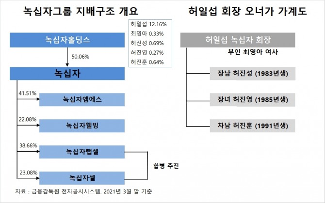 故 허영섭 회장의 오너가에서 갖고 있는 녹십자홀딩스 지분은 장남 허성수 전 녹십자 부사장(지분 0.62%), 차남 허은쳘 녹십자 대표(2.60%), 3남 허용준 녹십자홀딩스 사장(2.91%)으로 모두 6.13%에 달합니다. 허영섭 회장의 부인 정인애 씨는 상속받은 지분을 모두 매각한 것으로 알려졌습니다.