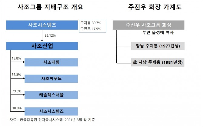 지주회사인 사조시스템즈는 지난해말 기준으로 주지홍 상무가 지분 39.7%(96만4545주)를 갖고 있는 최대주주입니다.