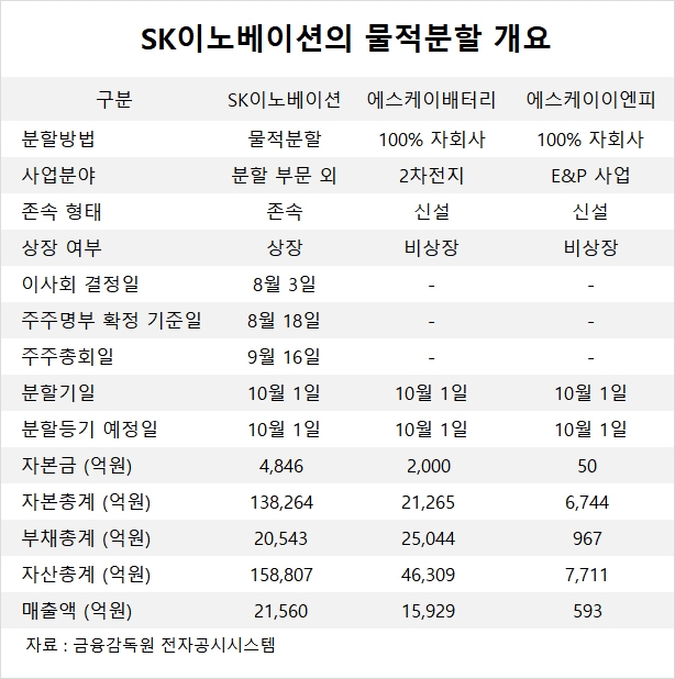 SK이노베이션은 내달 16일 임시 주주총회를 열어 물적분할안 의결을 거친 후 오는 10월 1일 신설 법인을 출범시킬 계획이다.