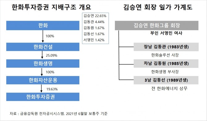 한화자산운용의 이번 한화투자증권 주요 자회사 편입은 김승연 회장의 차남인 김동원 한화생명 부사장의 금융계열사 경영 승계를 고려해 한화생명을 정점으로 하는 금융계열사 지배구조 개편의 한 방안으로 보입니다.