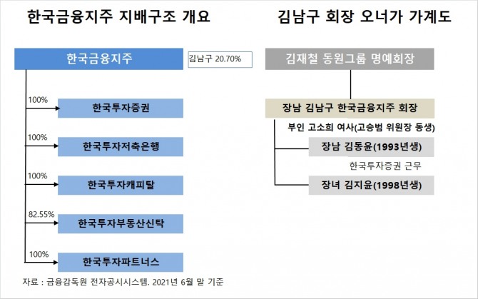 한국금융지주의 올해 6월말 기준 최대주주는 김남구 회장으로 지분 20.70%(1153만4636주)를 갖고 있습니다.
