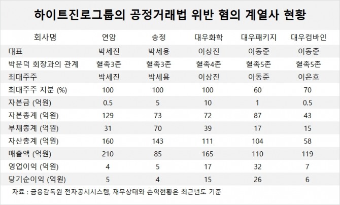 이들 5개사의 지분은 박 회장과 혈족 3~5촌 관계인 친인척들이 지분 100%를 갖고 있는 개인회사입니다.