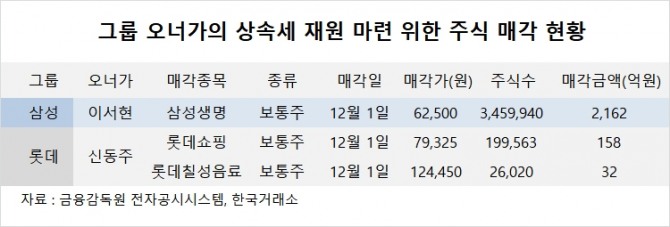 이서현 이사장 2162억원 달해, 신동주 회장은 190억원 규모…삼성생명 매각가 종가대비 1.13% 할증 vs 롯데쇼핑 매각가 종가대비 6.24% 할인