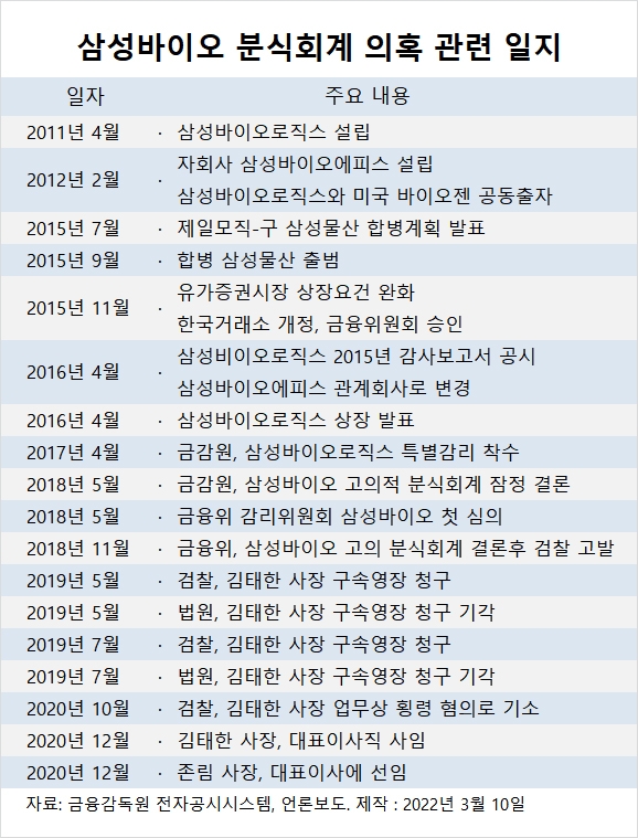 이는 핵심 쟁점인 삼성바이오가 2015년 자회사 삼성바이오에피스의 회계처리를 종속회사에서 관계회사로 변경해 기업 가치를 뻥튀기 했다는 의혹에 대해 고의 분식회계로 판단한 것입니다.