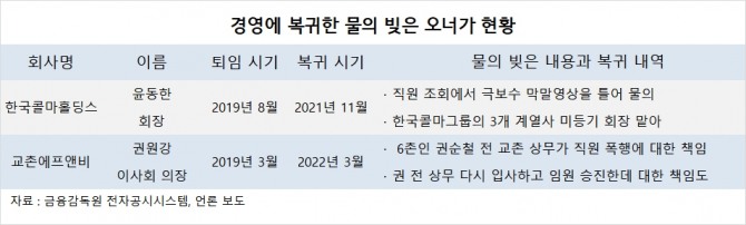 윤동한 회장은 한국콜마그룹의 계열사 3곳의 미등기임원 회장직을 맡게 되면서 문재인 정부 말기 들어 정치권의 눈치를 더 이상 보지 않게 되자 그룹 경영 전면에 나서는 것이 아니냐는 추측을 불러오고 있습니다.