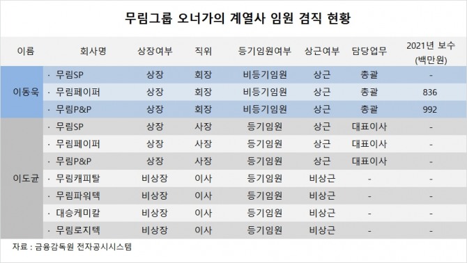 이도균 사장, 무림 계열사 7곳의 임원으로 등재…이동욱 회장은 지난해 무림페이퍼에서 8억3600만원, 무림P&P에서 9억9200만원 보수 받아