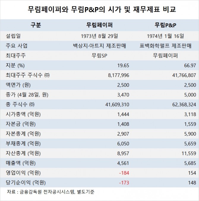 무림페이퍼는 1973년 8월 29일에 설립됐고 무림P&P는 1974년 1월 16일에 출범했습니다.